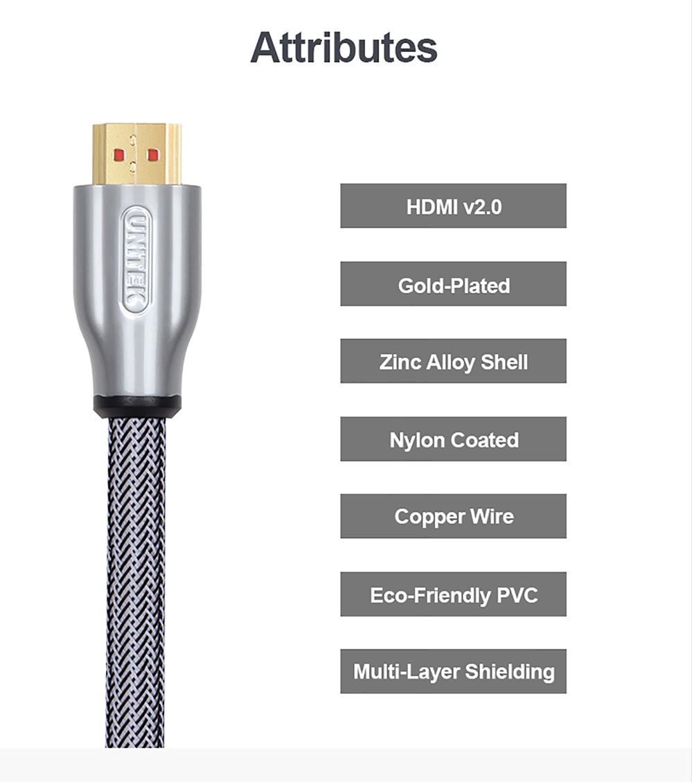 Unitek Y-C136RGY Premium HDMI 2.0 Braided Cable 1.0m