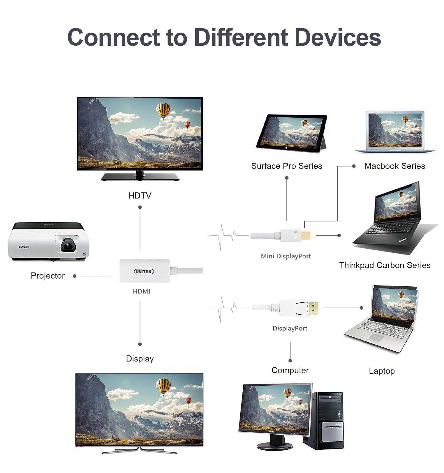 Compatible with almost all of the displays, TVs, projectors and many more.